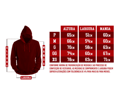 Este Moletom é 75% algodão e 25% Poliéster é flanelado por dentro, possui bolsos canguru e capuz